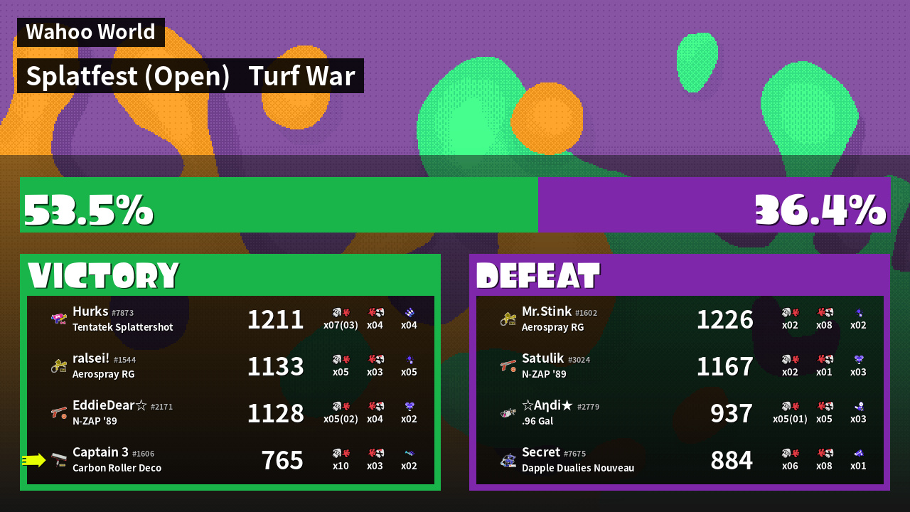 | Medals | #1 Overall Splatter #1 Popular Target #1 Enemy Splatter | ||