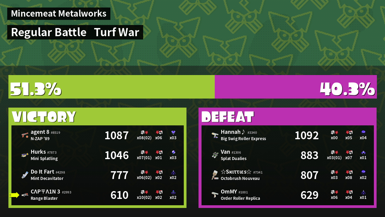 | Medals | #1 Overall Splatter #1 Popular Target #1 Enemy Splatter | ||