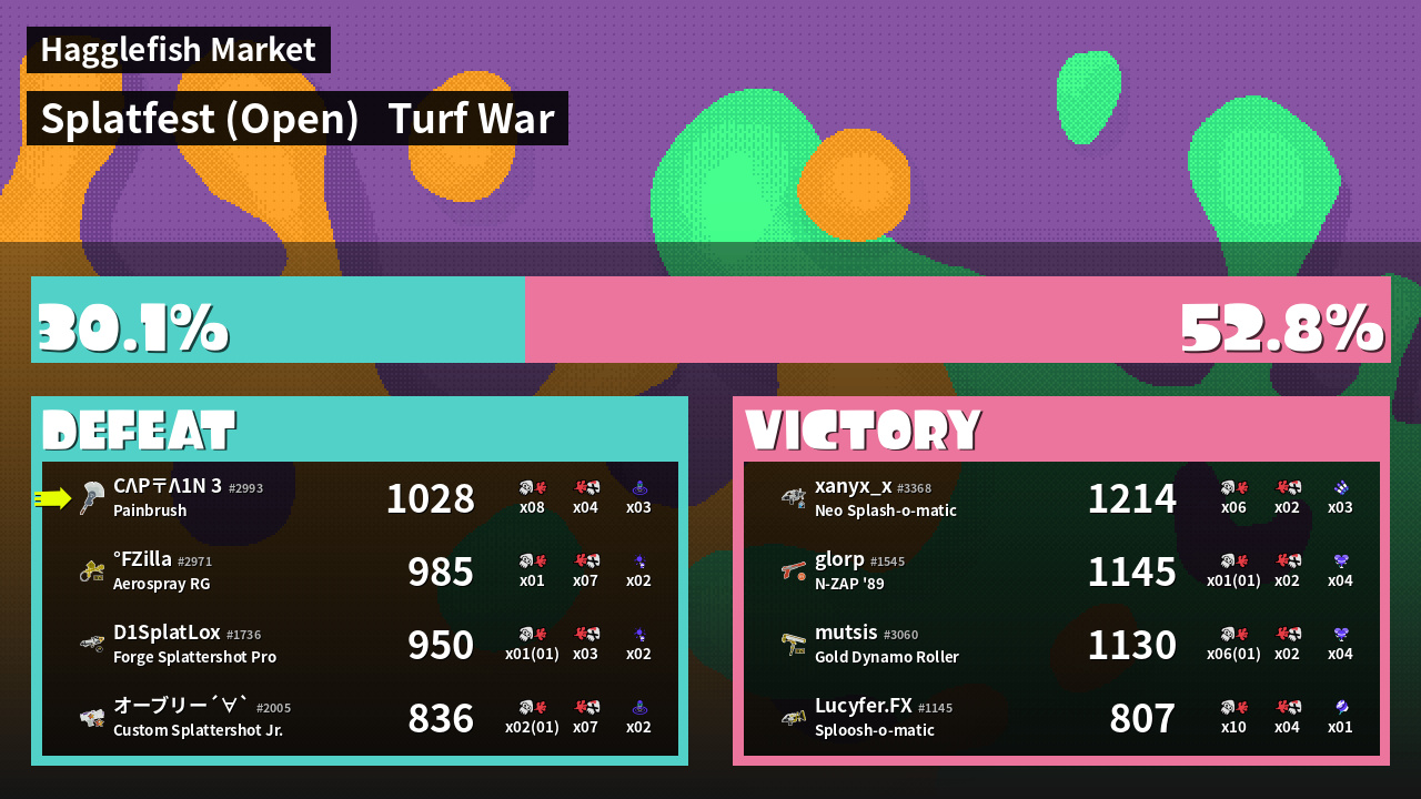 | Medals | #1 Overall Splatter #1 Turf Inker #1 Enemy Splatter | ||