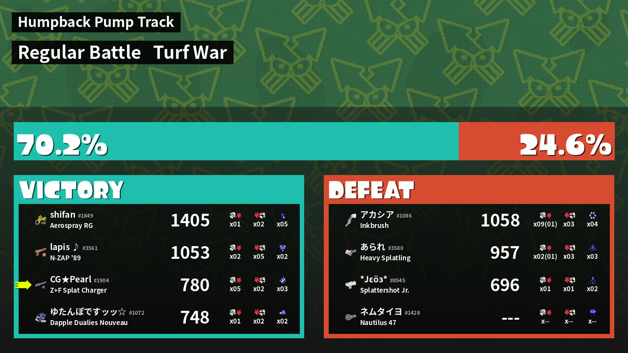 | Weapon | Z+F Splat Charger ( Splash Wall / Triple Inkstrike) | ||