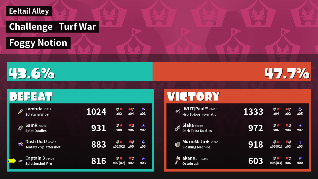 | Mode | Turf War - Challenge | ||