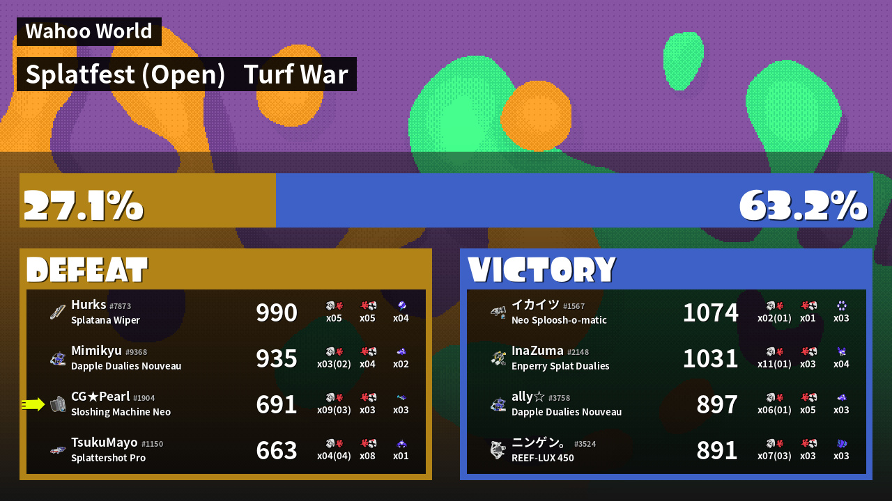 | Medals | #1 Overall Splatter #1 Popular Target #1 Enemy-Base Inker | ||