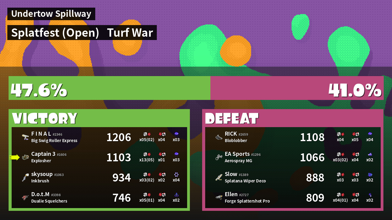 | Medals | #1 Overall Splatter #1 Popular Target #1 Enemy-Base Inker | ||