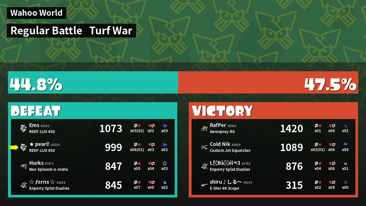 | Mode | Turf War - Regular Battle | ||
