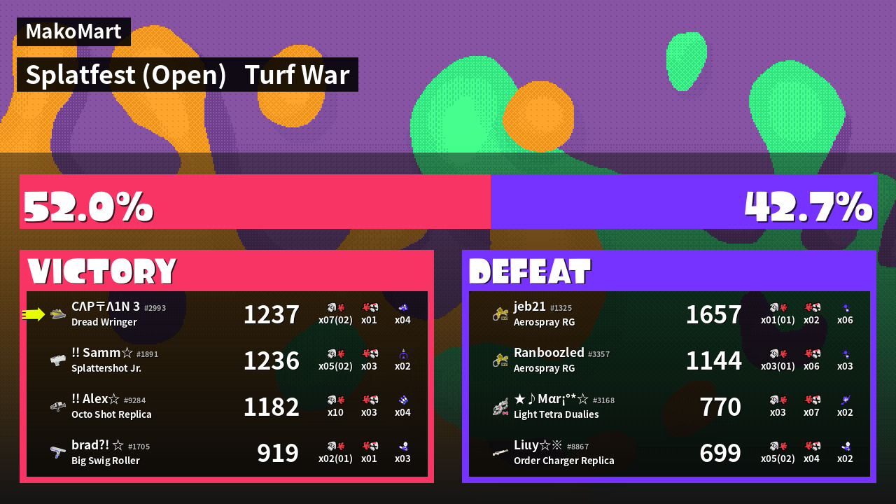 | Medals | #1 Turf Inker #1 Splat Assister #1 Ink Consumer | ||
