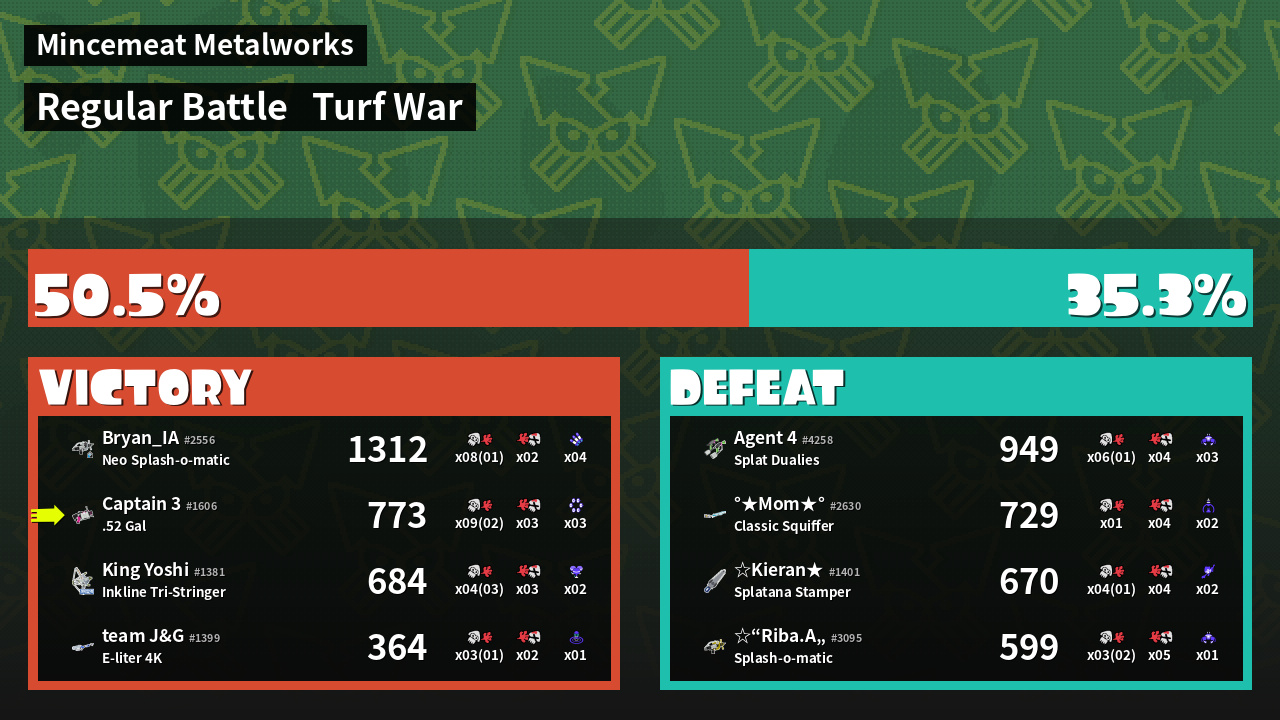 | Medals | #1 Overall Splatter #1 Popular Target #1 Enemy Splatter | ||
