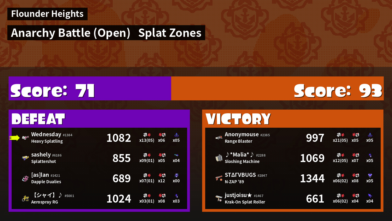 | Mode | Splat Zones - Anarchy Battle (Open) | ||
