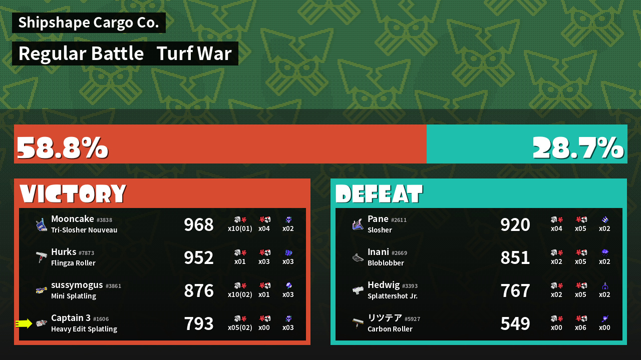 | Medals | #1 Splat Assister #1 Base Defender #1 Ink Consumer | ||