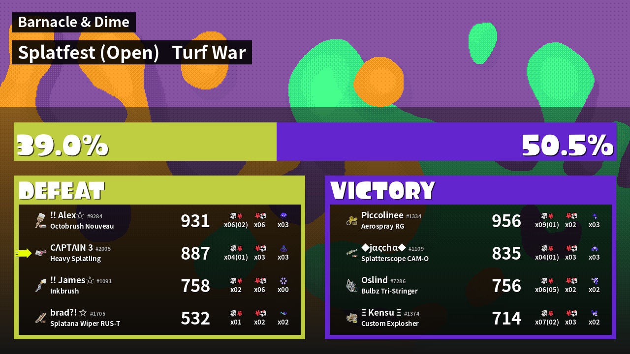 | Medals | #1 Wave Breaker User #2 Overall Splatter #2 Turf Inker | ||