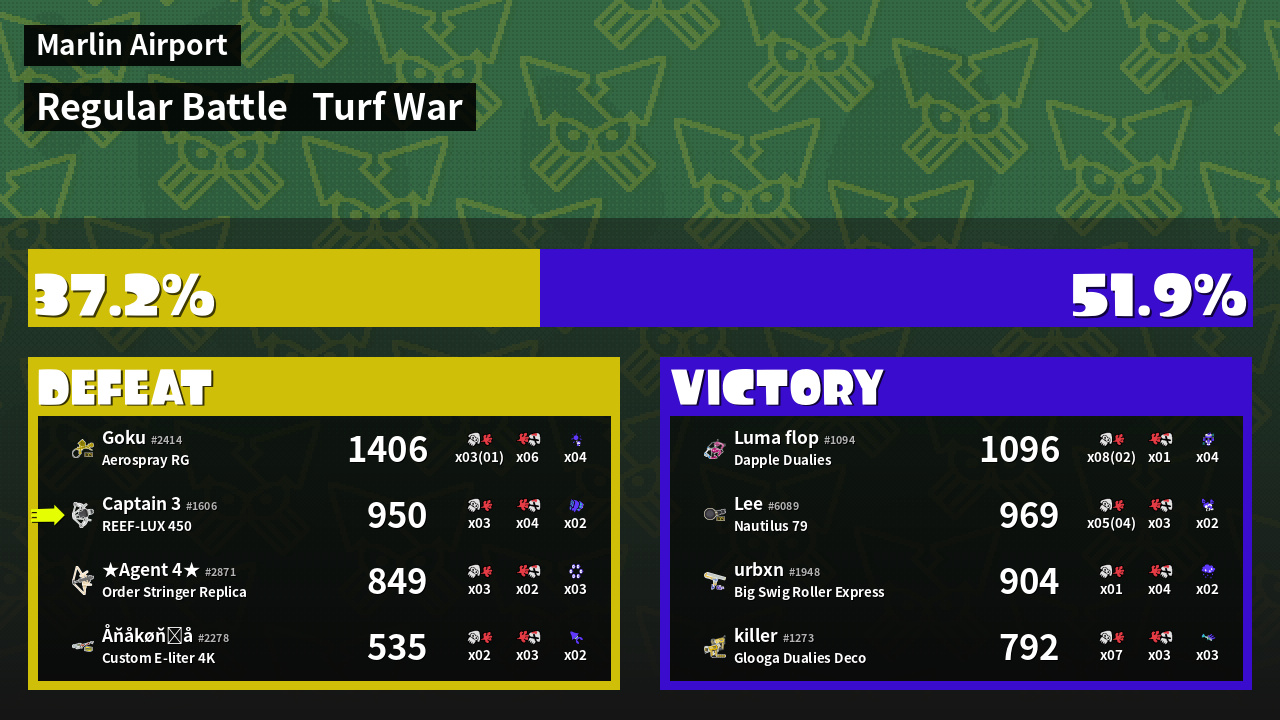 | Medals | #1 Overall Splatter #1 Enemy-Base Inker #1 Enemy Splatter | ||