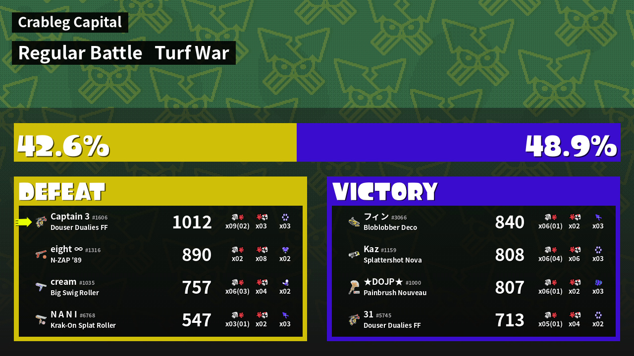 | Mode | Turf War - Regular Battle | ||