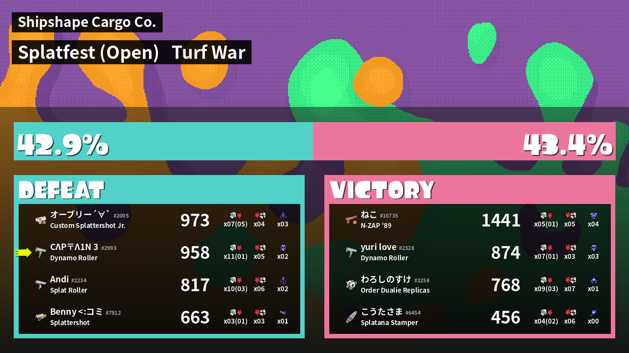 | Medals | #1 Overall Splatter #1 Enemy Splatter #1 Tacticooler User | ||