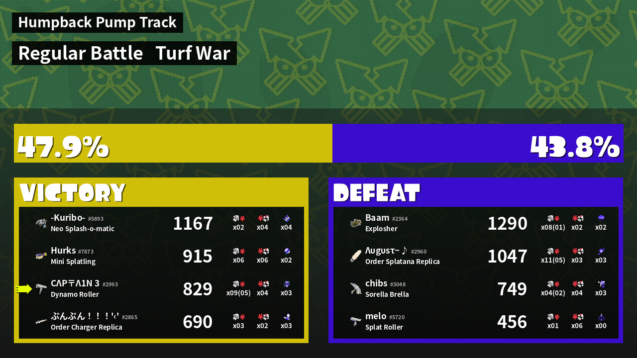 | Mode | Turf War - Regular Battle | ||
