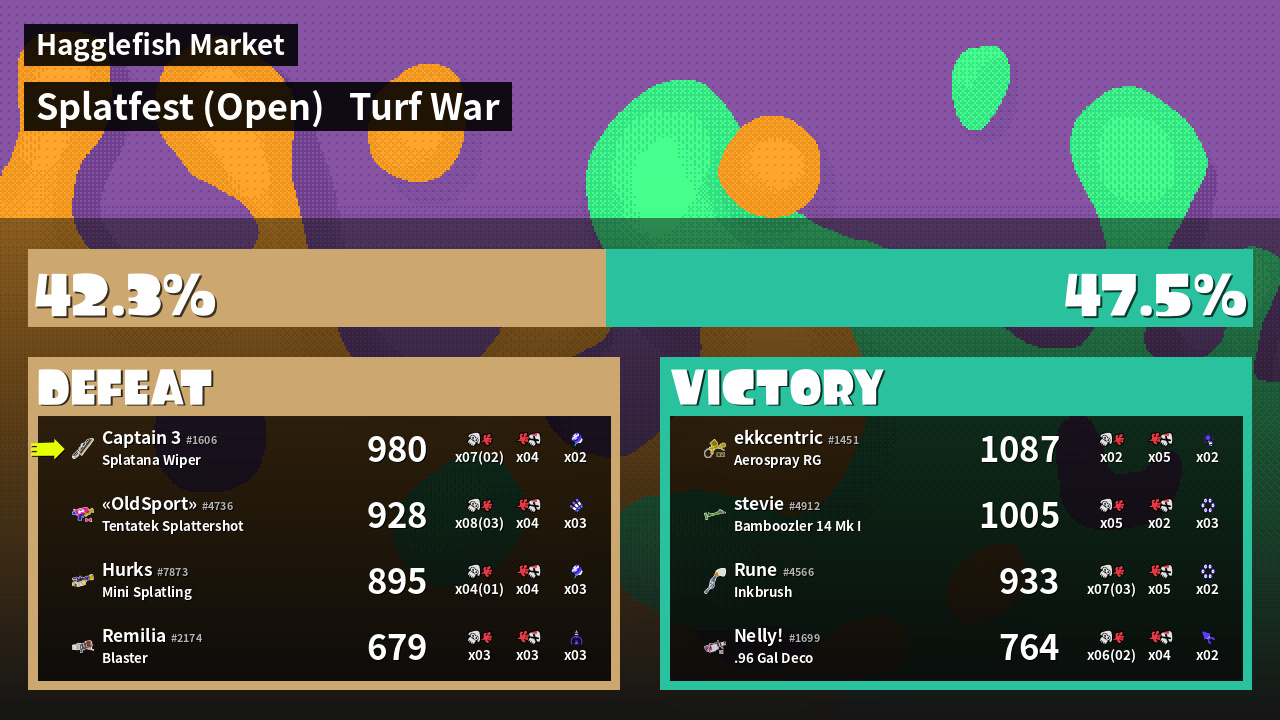 | Medals | #1 Turf Inker #1 Enemy Splatter #1 Ink Consumer | ||