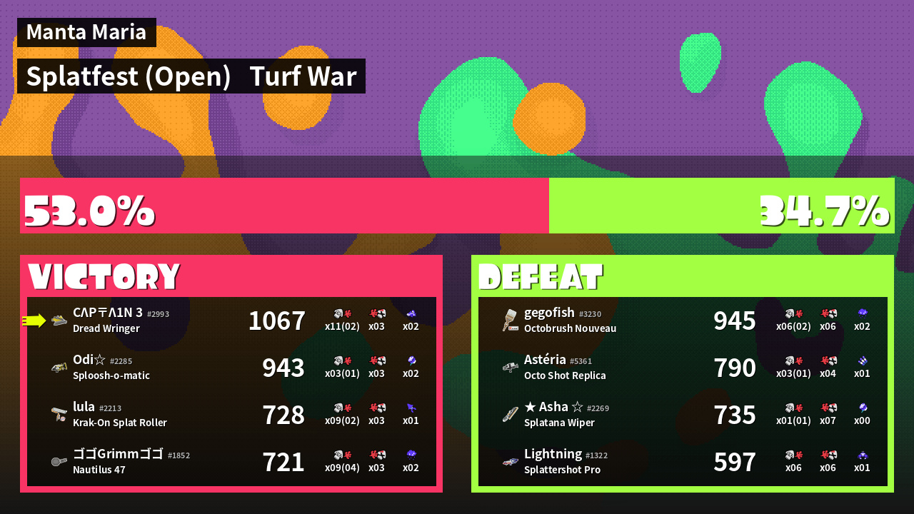 | Medals | #1 Overall Splatter #1 Turf Inker #1 Popular Target | ||