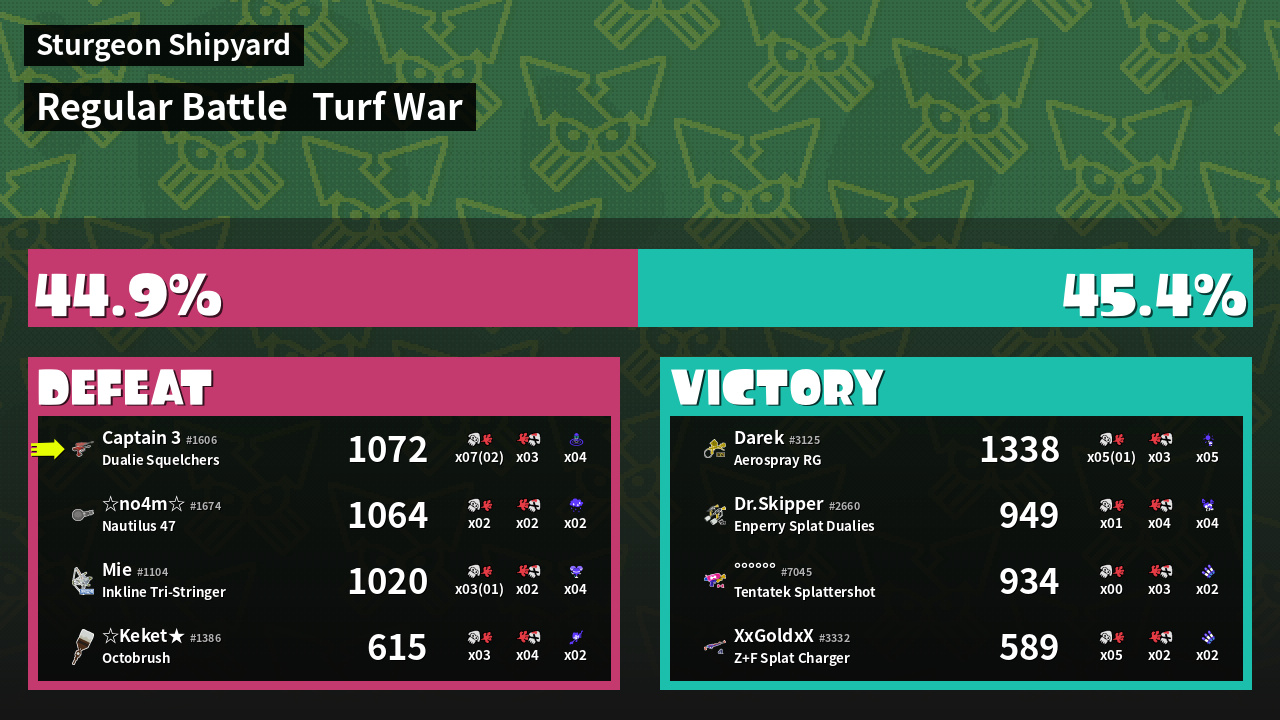| Medals | #1 Overall Splatter #1 Turf Inker #1 Enemy-Base Inker | ||