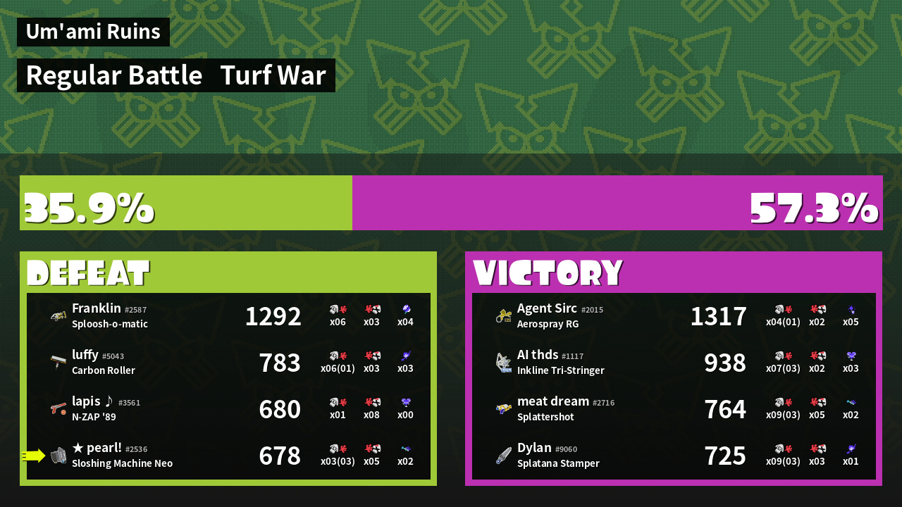 | Mode | Turf War - Regular Battle | ||