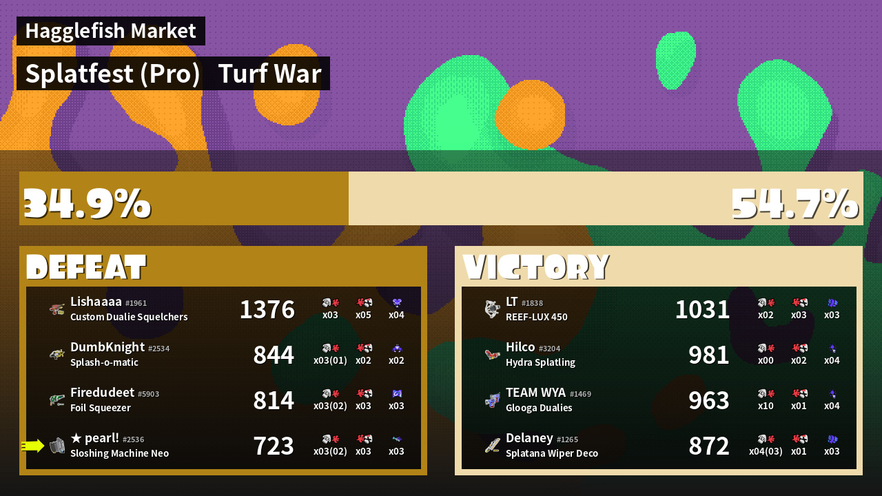 | Medals | #1 Overall Splatter #1 Popular Target #1 Splat Assister | ||