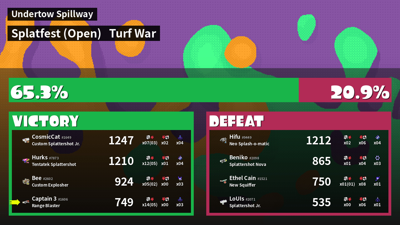 | Medals | #1 Overall Splatter #1 Popular Target #1 Enemy Splatter | ||