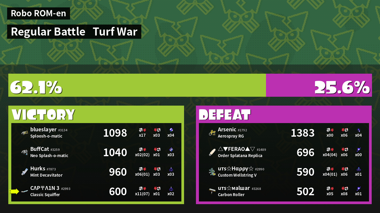 | Mode | Turf War - Regular Battle | ||