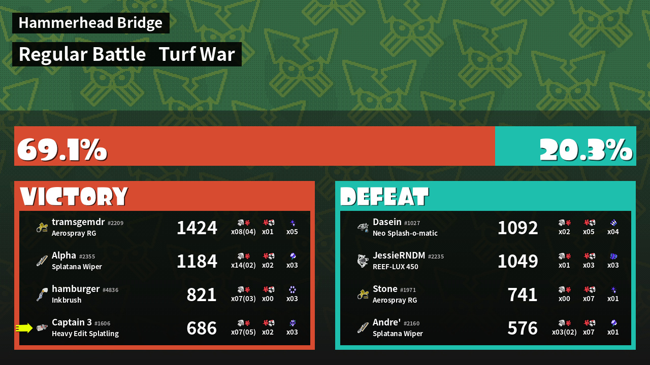 | Medals | #1 Splat Assister #1 Tacticooler User | ||