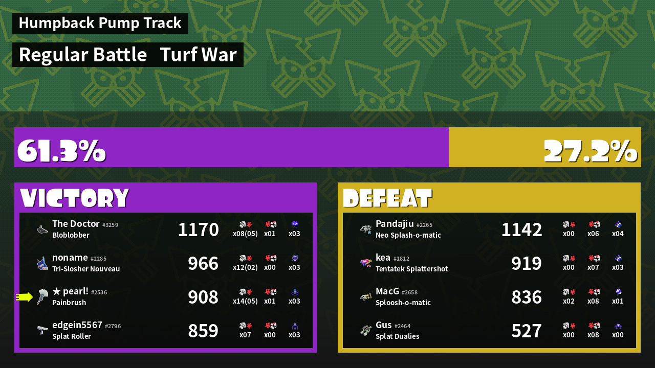 | Medals | #1 Overall Splatter #1 Home-Base Inker #1 Splat Assister | ||