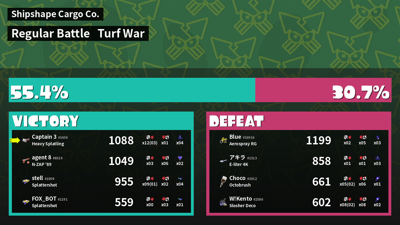 | Medals | #1 Overall Splatter #1 Turf Inker #1 Enemy Splatter | ||