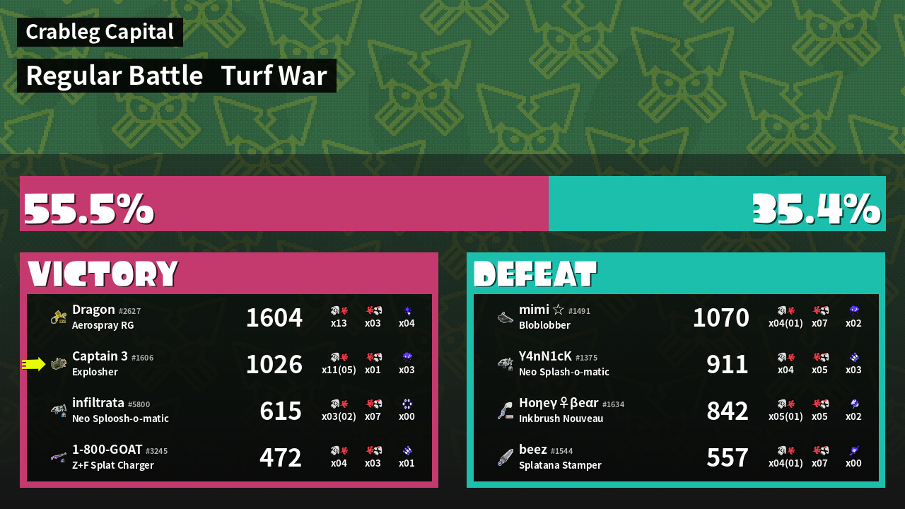 | Medals | #1 Super Jump Spot #1 Splat Assister #1 Ink Consumer | ||