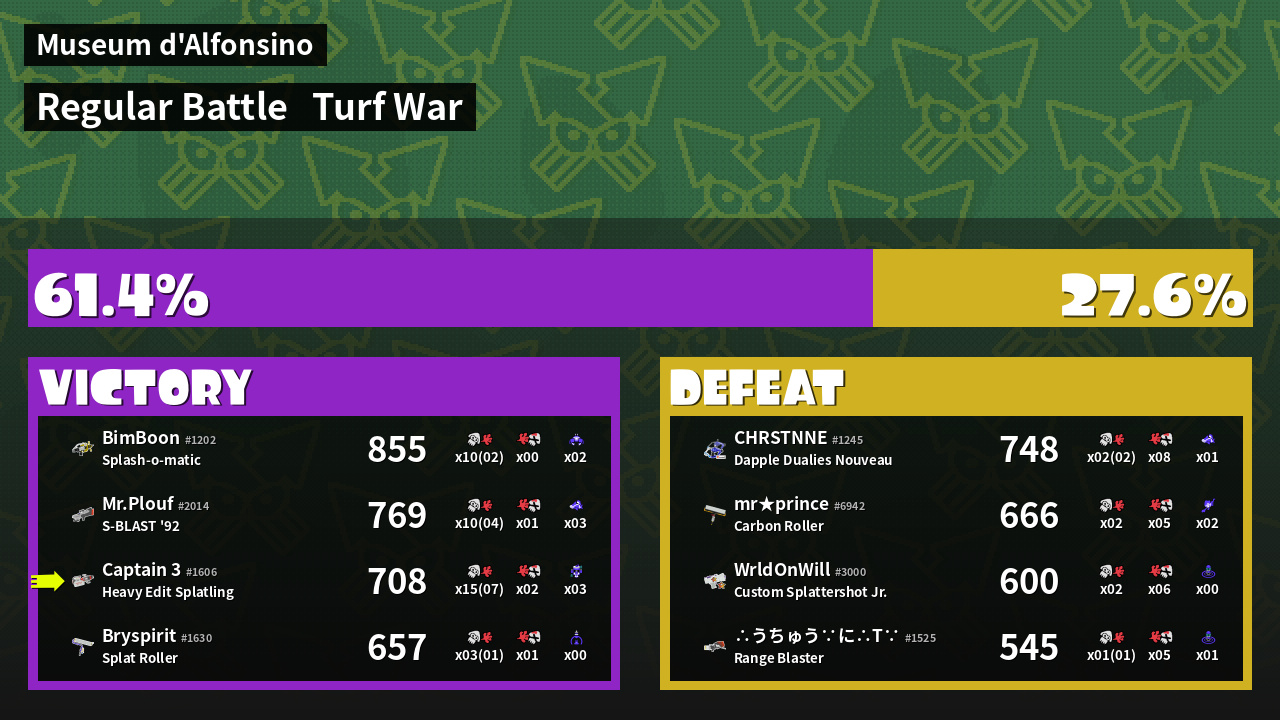 | Medals | #1 Overall Splatter #1 Enemy Splatter #1 Splat Assister | ||
