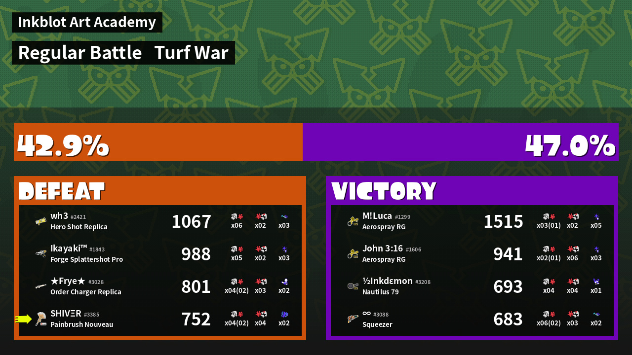 | Mode | Turf War - Regular Battle | ||
