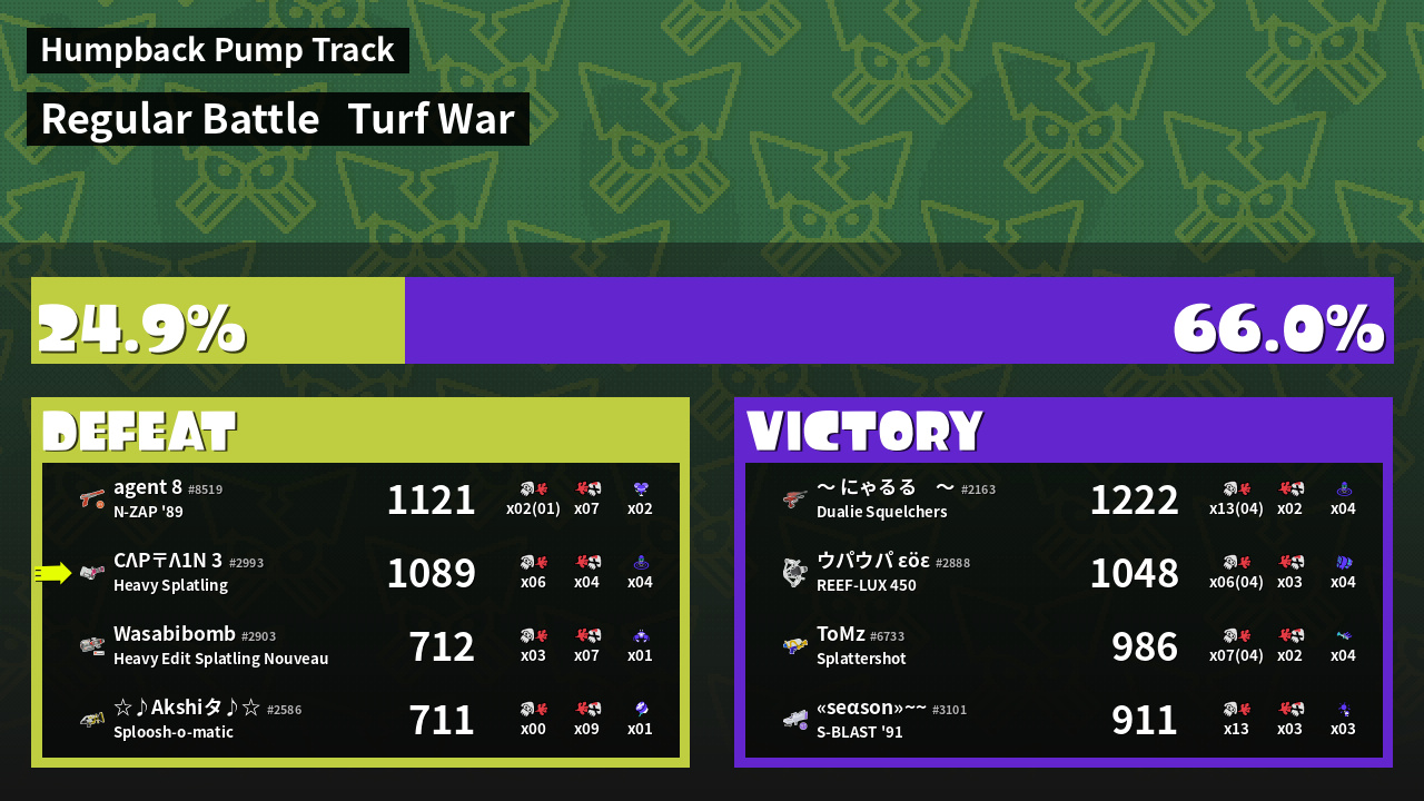 | Mode | Turf War - Regular Battle | ||