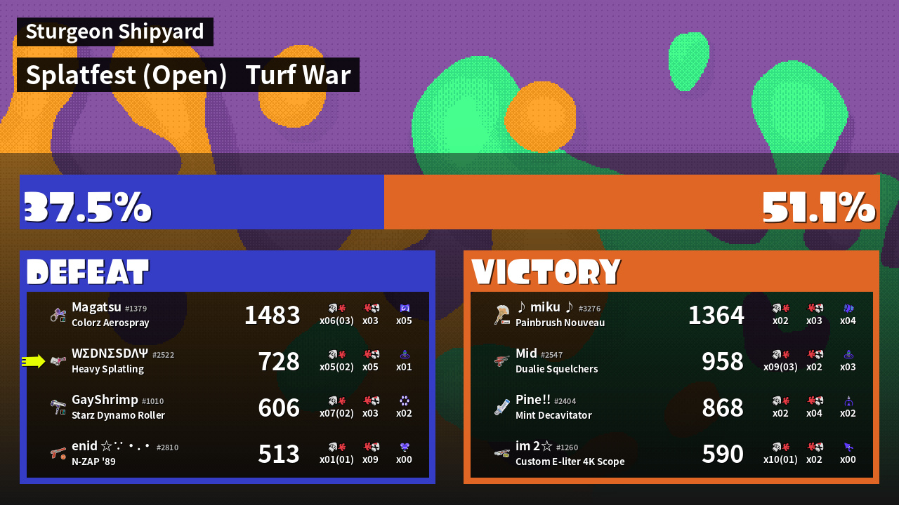 | Mode | Turf War - Splatfest (Open) | ||