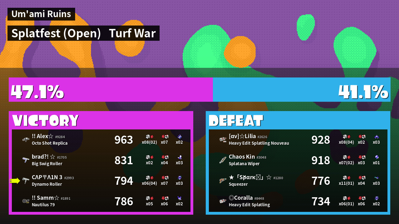 | Mode | Turf War - Splatfest (Open) | ||