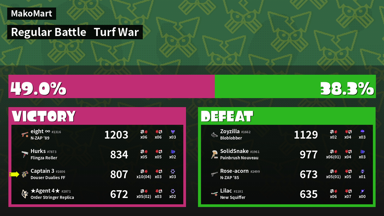 | Mode | Turf War - Regular Battle | ||