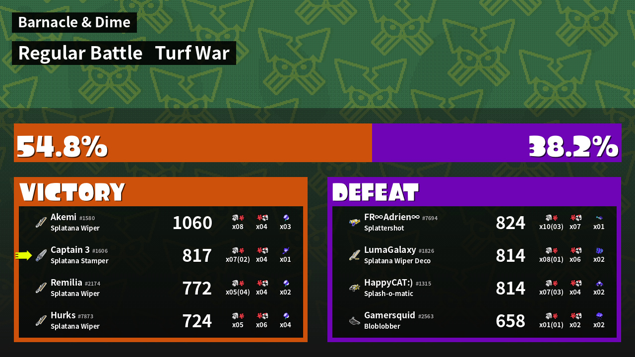 | Mode | Turf War - Regular Battle | ||