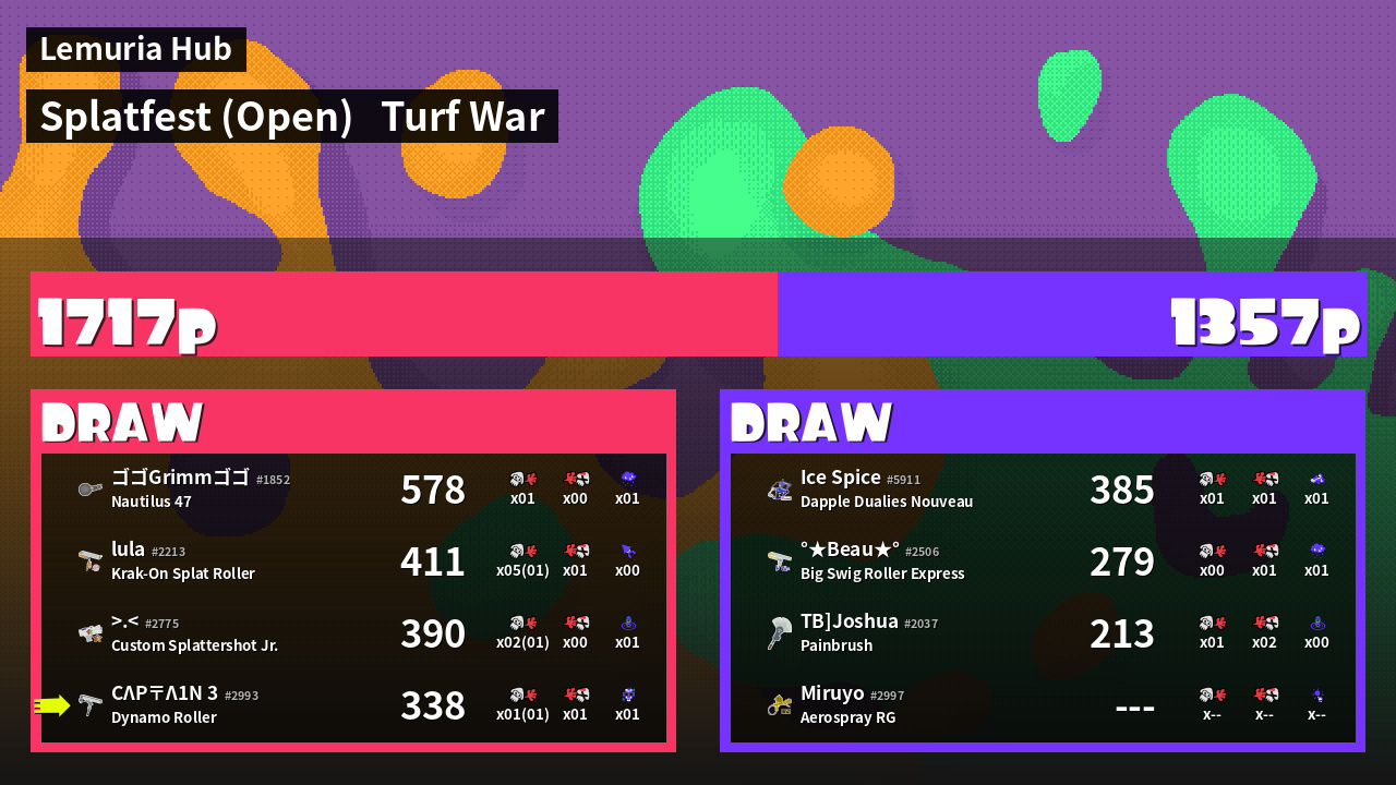 | Weapon | Dynamo Roller ( Sprinkler / Tacticooler) | ||
