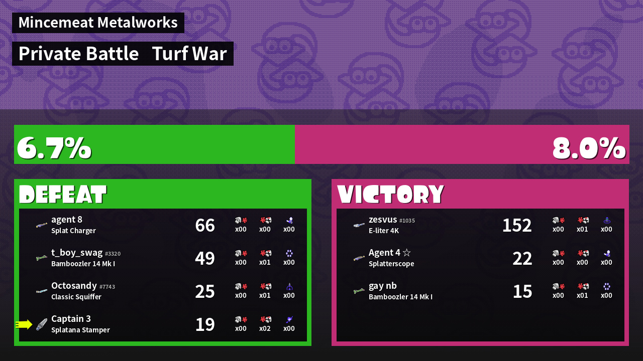 | Mode | Turf War - Private Battle | ||