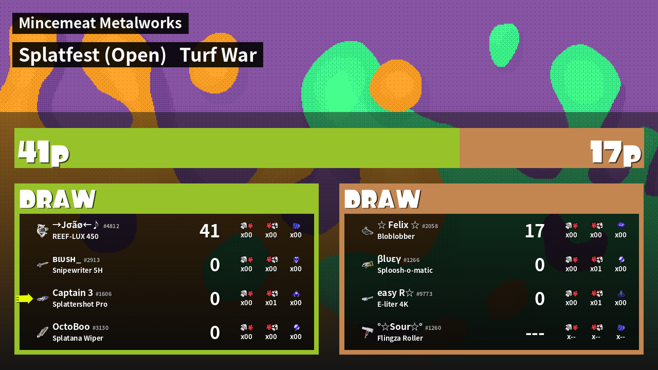 | Mode | Turf War - Splatfest (Open) | ||