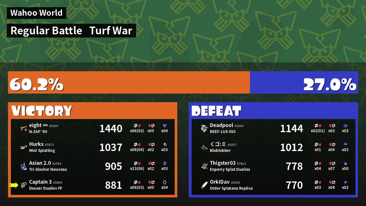 | Mode | Turf War - Regular Battle | ||
