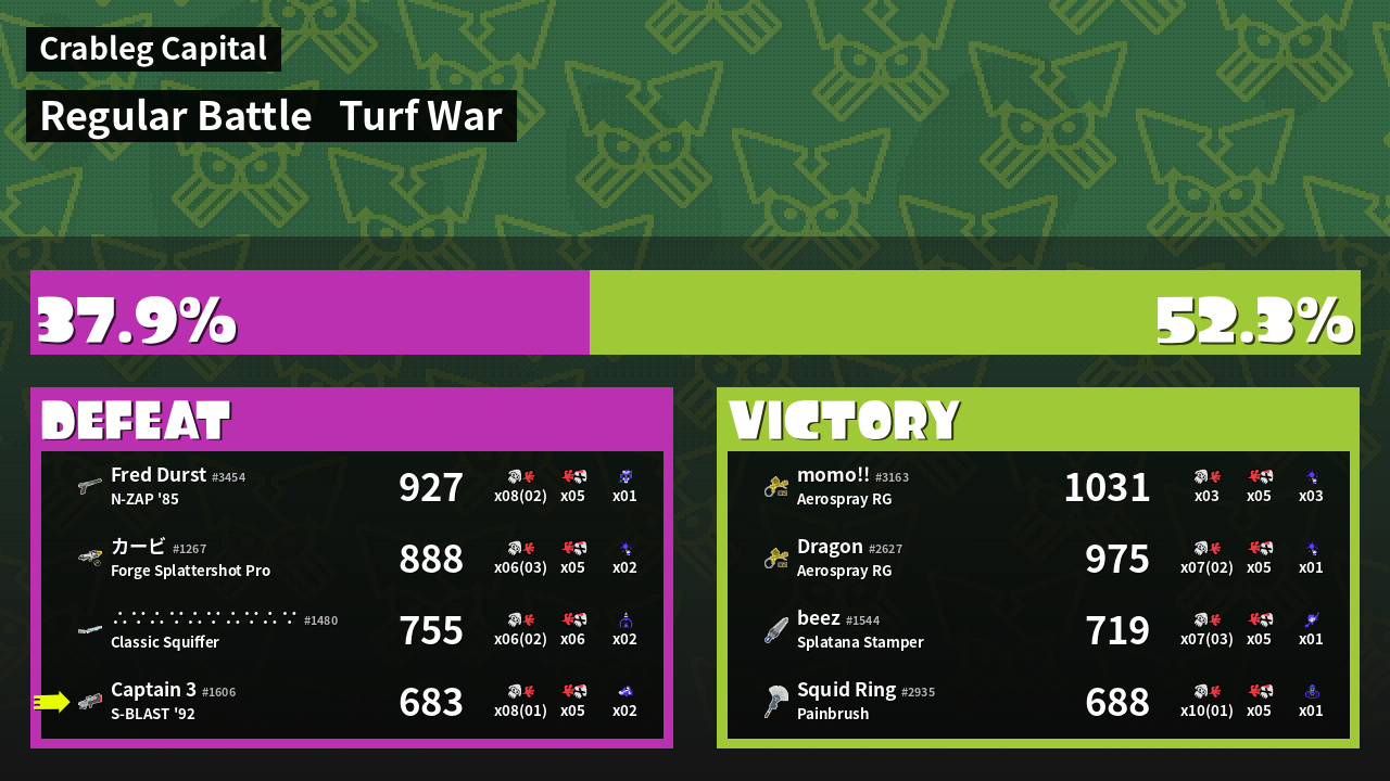 | Medals | #1 Overall Splatter #1 Enemy Splatter #1 Base Defender | ||