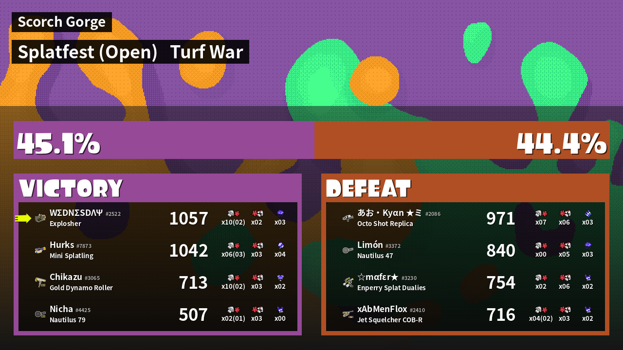 | Medals | #1 Overall Splatter #1 Turf Inker #1 Enemy-Base Inker | ||
