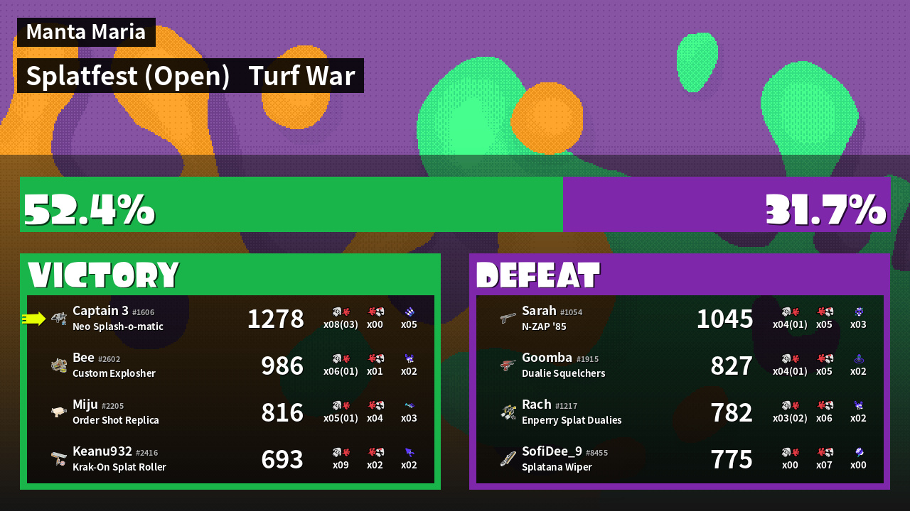 | Medals | #1 Turf Inker #1 Enemy-Base Inker #1 Super Jump Spot | ||