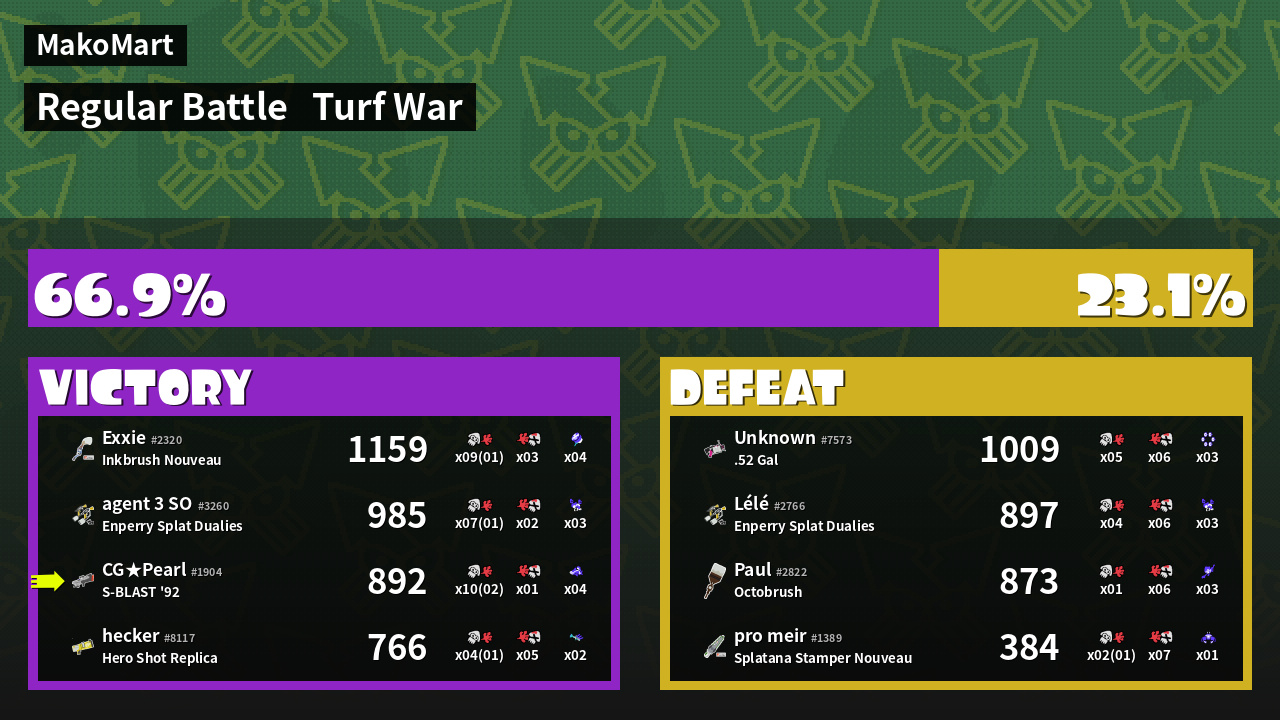 | Mode | Turf War - Regular Battle | ||