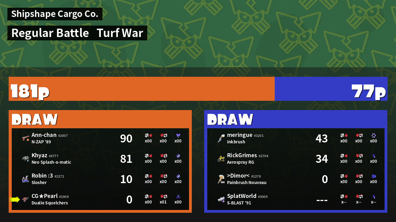 | Mode | Turf War - Regular Battle | ||