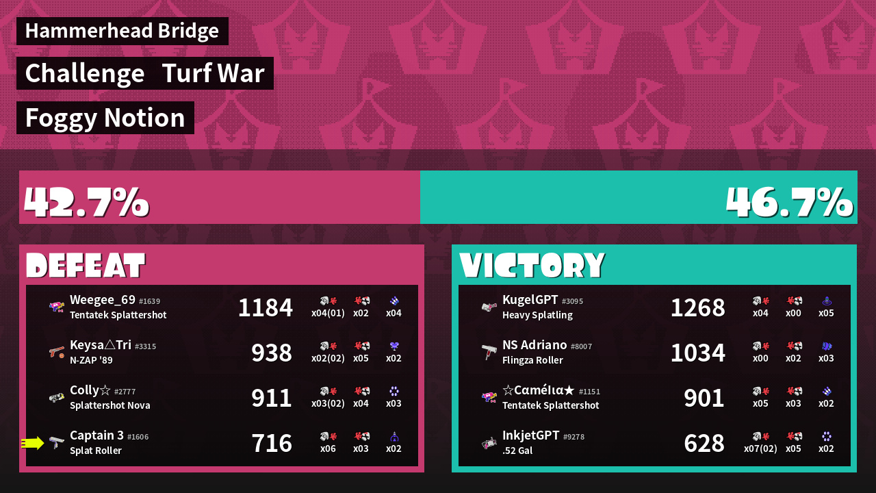 | Medals | #1 Overall Splatter #1 Popular Target #1 Enemy Splatter | ||