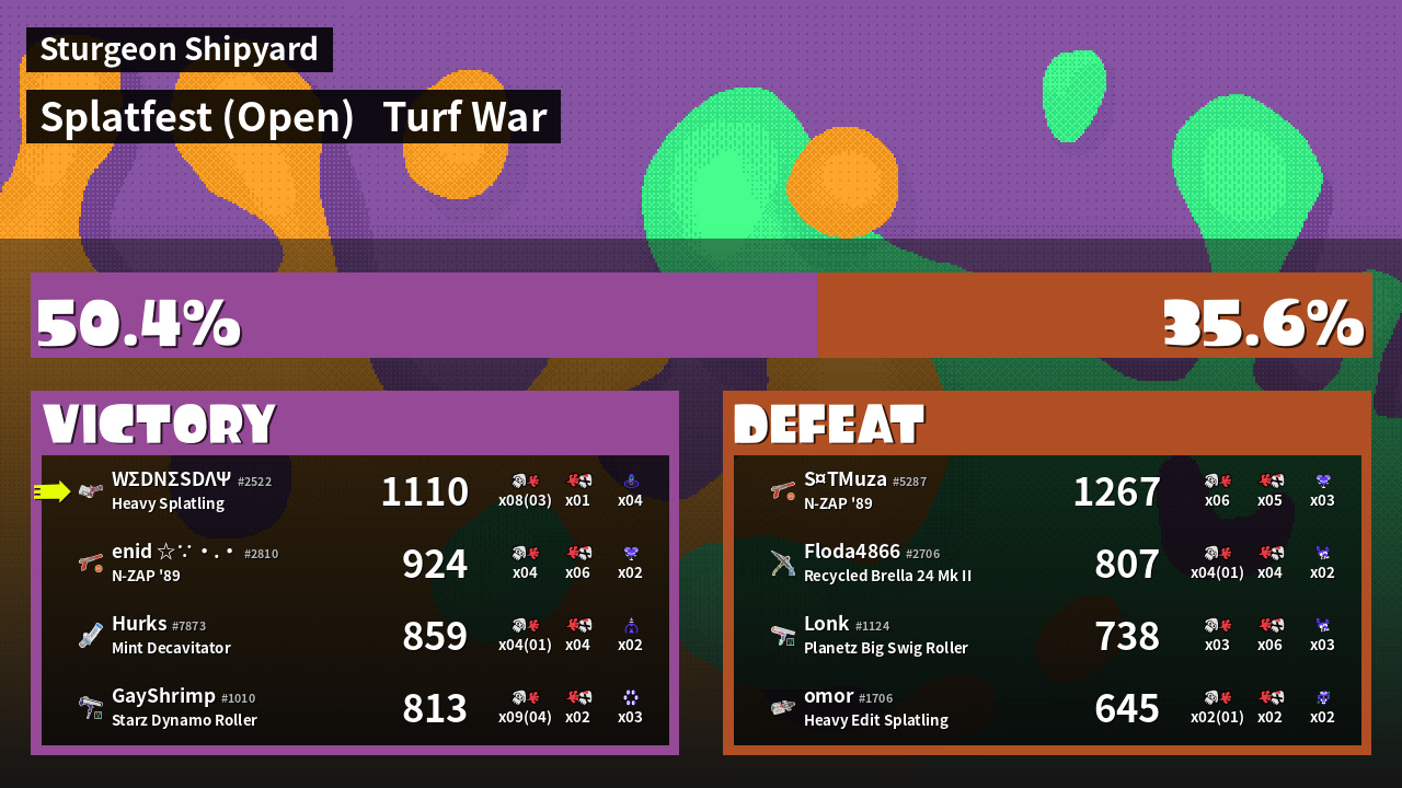 | Medals | #1 Turf Inker #1 Super Jump Spot #1 Enemy Splatter | ||