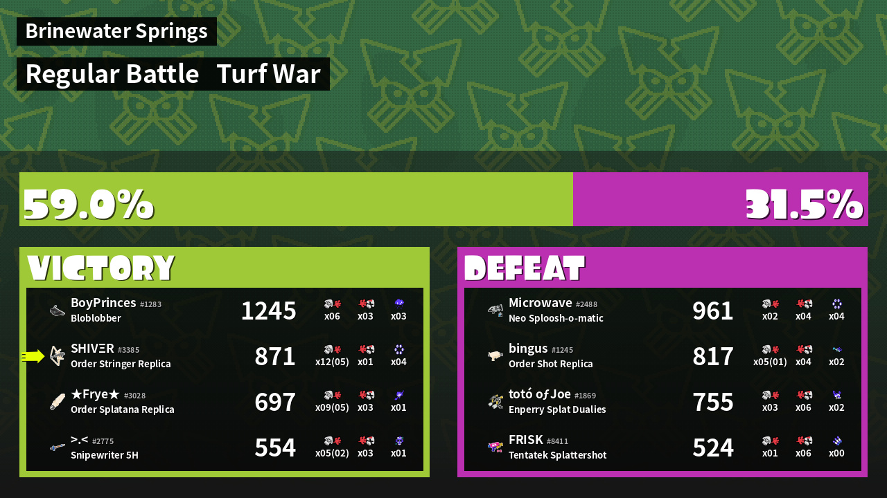 | Mode | Turf War - Regular Battle | ||
