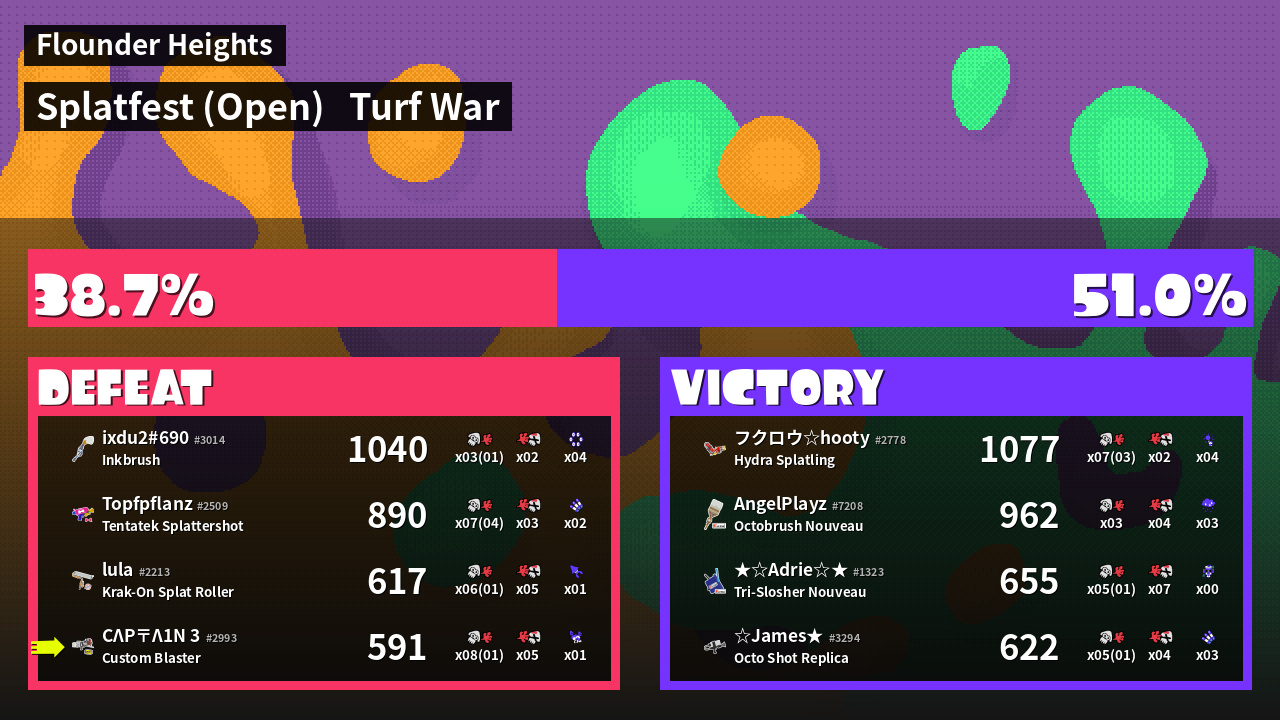 | Medals | #1 Overall Splatter #1 Popular Target #1 Enemy Splatter | ||