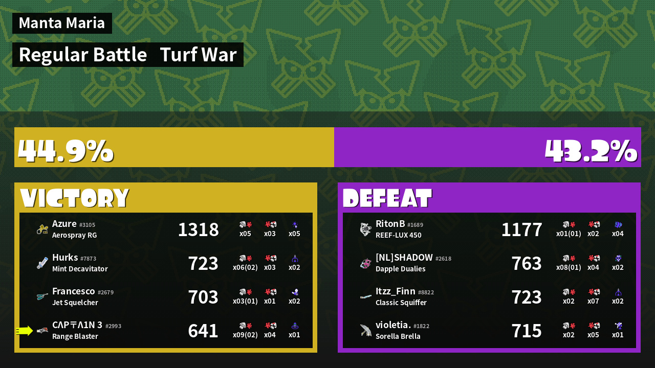 | Medals | #1 Overall Splatter #1 Enemy Splatter #1 Splat Assister | ||