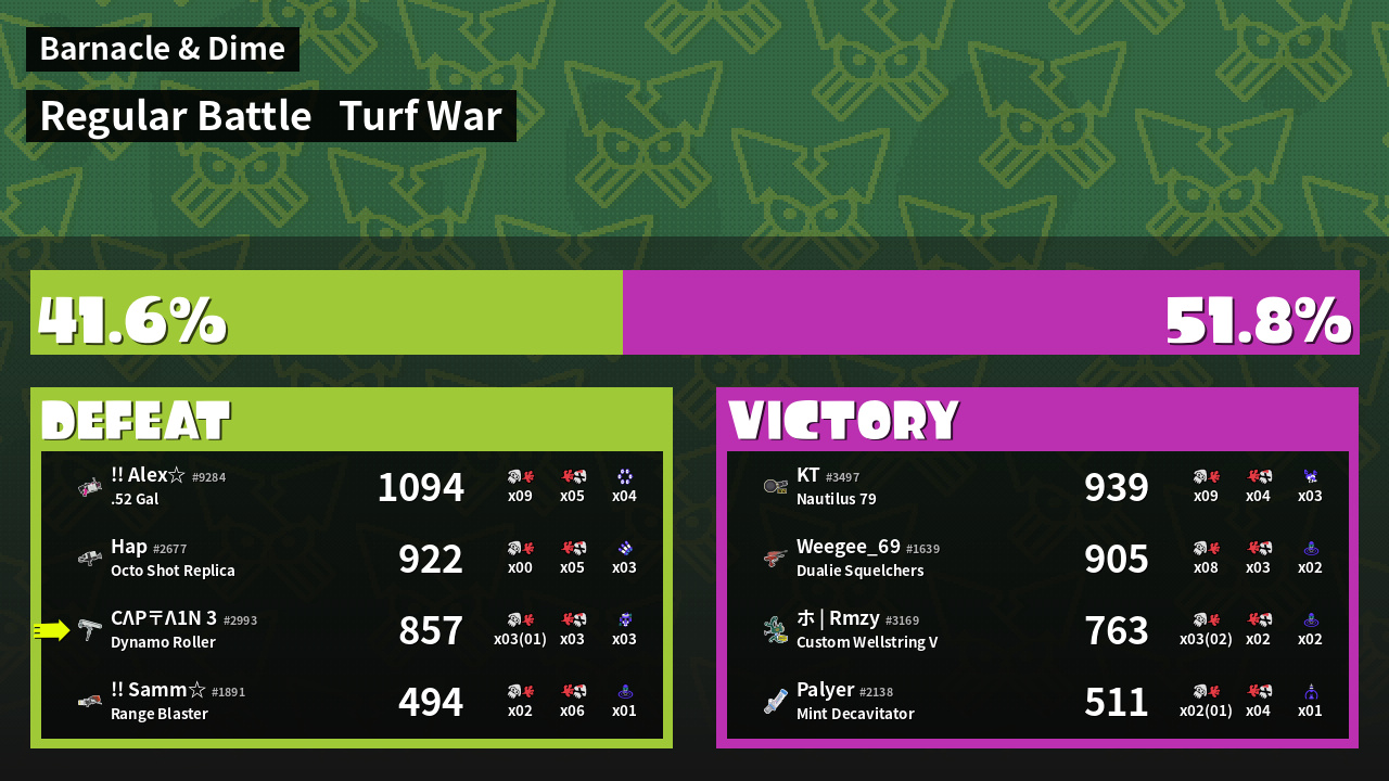 | Medals | #1 Splat Assister #1 Ink Consumer #1 Tacticooler User | ||